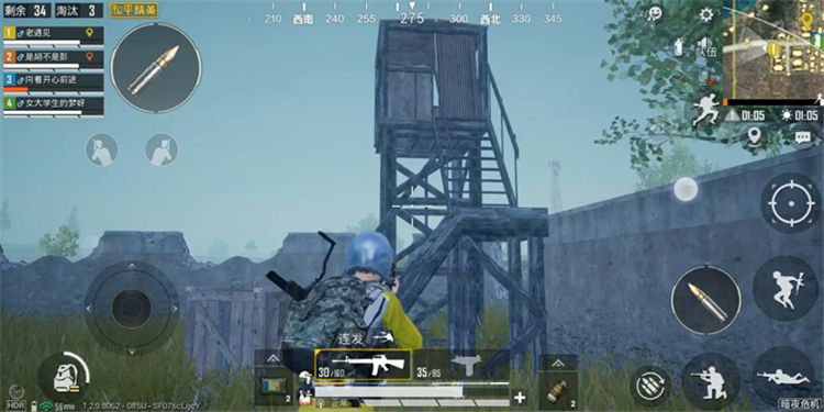 再给大家介绍一些容错率比较高的位置,第一个就是水中,僵尸们可是不会游泳的,地图中有大片的水域,到了水里我们就安全了。还有一个就是一些小哨塔,这里可以直接翻到顶部,在这里除了远程攻击的僵尸以外都是打不到你的。
