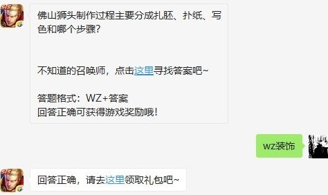 Tags:以上就是小编为大家带来的王者荣耀每日一题答案7月4日 佛山狮头制作过程主要分成扎胚、扑纸、写色和哪个步骤?的内容介绍,你还想了解更多游戏资讯吗?记得收藏关注游戏爱好者。