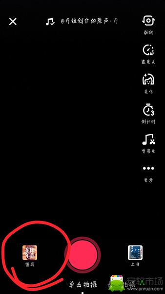 1、打开抖音的拍摄功能,点击左下角的道具。