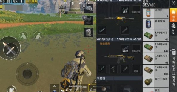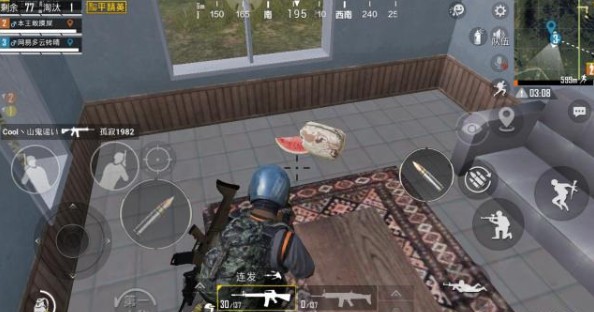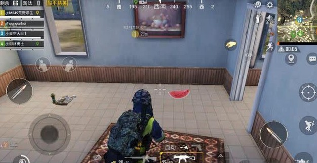 如上图所示,此时玩家在雨林地图中,左上角剩余人数还有将近70人,开局还不到10分钟,这位小伙伴的背包里已经有了6个西瓜。