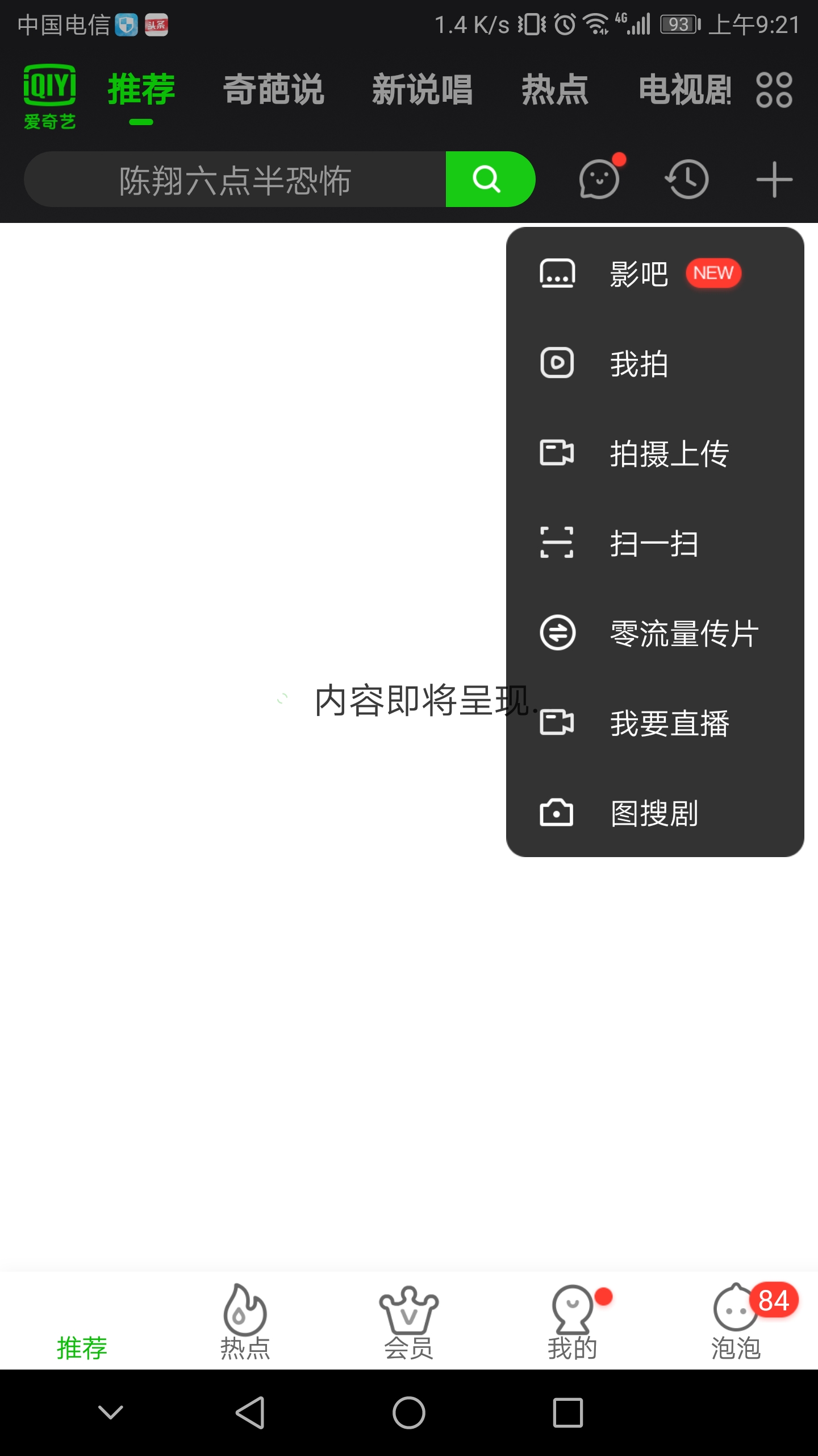 1、打开手机爱奇艺点击右上角的“+”按钮。