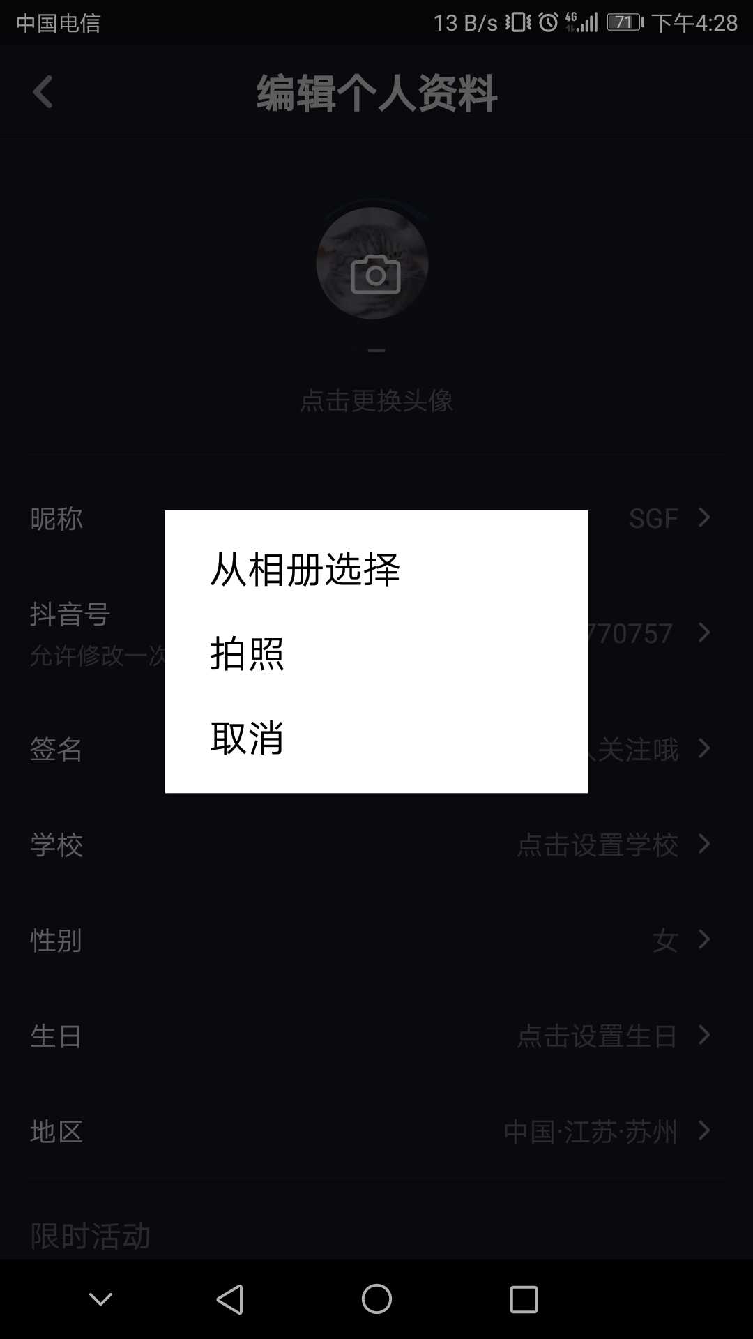 抖音头像更换方法