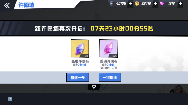 使用许愿墙获得战姬后,许愿墙会进入冷却。使用许愿石可以加速系统的冷却时间,以便更快地进行下一次许愿并获得战姬。