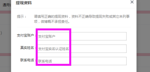 8.输入支付宝账户、真实姓名、联系电话,点击“确定”,当粉丝给你打赏后,你就可以提现了。