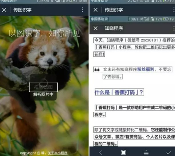 1.传图识字是微信中的一个小程序,扫描下面二维码即可使用。