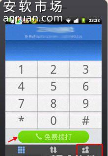 3、进入主界面,可看到一电话图标,打开即进入拨号页面。这时可以直接拨号拨打,也可以打开你的通讯录选择联系人;