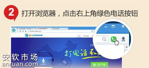 2、下载安装后,打开2345浏览器,然后点击右上角绿色电话按钮即可开启免费网络电话功能,如下图所示: