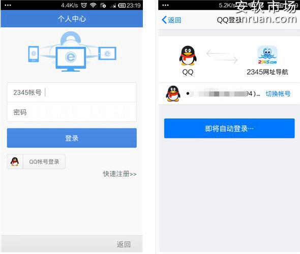 3、这里大家可以直接使用QQ号码绑定登录即可,当然大家也可以自己注册一个2345浏览器账号登录,如下图所示: