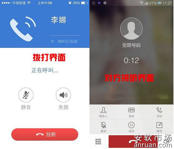 5、以上步骤完成后,就可以正式免费打电话了,可以直接调用手机的通讯录,也可以直接输入手机号码拨打,如下图所示: