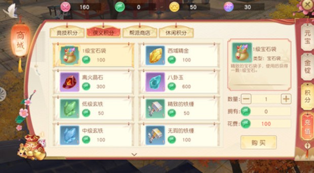休闲积分:参与翰林求学、世界答题、一站到底或是趣味竞猜,跟一些小游戏(踏雪无痕、神雕快跑)都可以获得积分,当然对应的奖励也是休闲玩家更喜欢的秘宝图、时装、染料等等和游戏属性关系不大的物品。