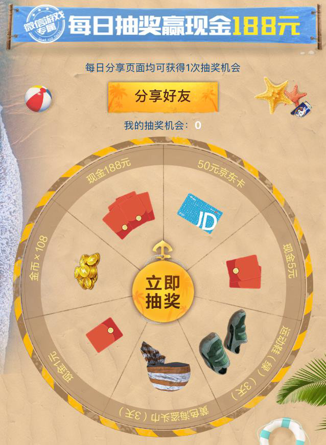 除了参赛,各位特种兵还能通过每日分享获取抽奖机会,幸运的锦鲤们最高可获得188元现金大奖。