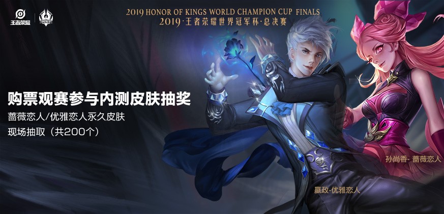 2019年世冠总决赛现场,除了能够亲临现场见证世冠冠军加冕之外,到场的召唤师们也将有机会获得诸多好礼。200个珍贵的内测皮肤——孙尚香“蔷薇恋人”、嬴政“优雅恋人”将从购票并前往现场观赛的观众中随机抽奖发放,期待召唤师们的到场!