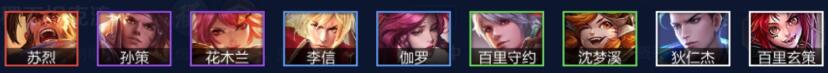 阵容成员:苏烈+孙策+花木兰+李信+伽罗+百里守约+沈梦溪+狄仁杰+百里玄策