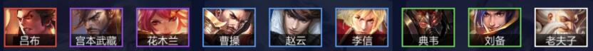 阵容成员:吕布+宫本武藏+花木兰+曹操+赵云+李信+典韦+刘备+老夫子