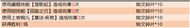 完成指定英雄技能训练,完成对局任务得铭文碎片礼