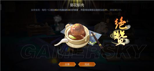葵花斩肉的做法是蛋+虾+猪肉+井水,记得用炖锅。成本大概在1300金左右,不算绝赞加成每吃一口可以增加63点饱腹值和3点好感。