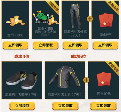 6.页面所有现金红包先到先得,领完即止。领取前务必确认已关注微信游戏公众号。页面领成功后,请在24小时内前往微信游戏公众号领取,逾期红包失效无法领取。非微信活跃用户无法获得红包