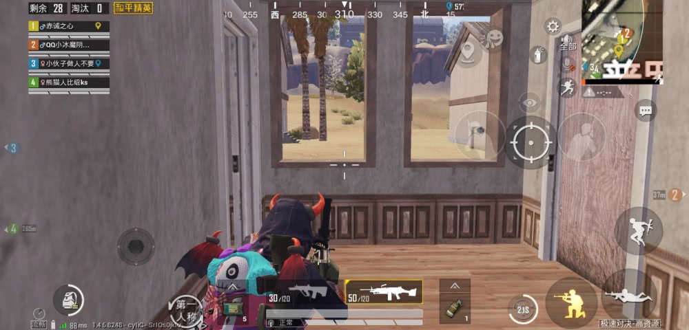 所以得准备计划,提前分配好资源,打好能量,这是常识,然后我们要仔细观察与安全区之间的距离,以及危险区扩大的剩余时间,原地不动等待时机 还不如主动进攻,趁现在时间充足,我们一定要从危险区的边缘进圈,当然四人不要集中一起行动,我们先进行探点,以免中了埋伏,而其余两个队友负责殿后 。