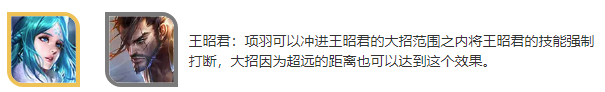 | 被动:项羽生命低于30%时,自身减少40%所受到的伤害,持续6秒,每90秒最多触发一次;项羽的普通攻击会对目标额外造成其6%最大生命值的物理伤害;对小兵/野怪造成400点物理伤害;对建筑额外造成6%最大生命值和400点物理伤害;每个目标每5秒只能触发一次;固定伤害会随着英雄等级成长,每级增长35点物理伤害 | 项羽向指定方向冲撞,冲撞时触碰到的所有敌人会被一起击退,冲撞结束时项羽还会向前方发动一次挑斩,挑斩会将敌人击飞0.5秒,冲撞和挑斩都会对敌人造成120/144/168/192/216/240(+48%物理加成)点物理伤害,技能命中敌方会减少30%无畏冲锋的冷却时间 | 项羽发出怒吼,对附近范围内的敌人造成130/154/178/202/226/250(+80%物理加成)点法术伤害,并且会减少30%的移动速度和25/28/31/34/37/40%的伤害输出,持续2秒; 被动:项羽的每1点物理防御会额外增加1.5-2.5点最大生命值(随技能等级成长) | 项羽朝指定方向蓄力后斩出一道刀气,对路径上的敌人造成500/750/1000(+100%物理加成)点物理伤害,对被枪刃命中的敌人会造成额外66%伤害并将其眩晕1秒;被动:项羽会对等级低于或等于自身的目标造成额外20%的伤害 |