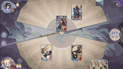 敌方酒吞童子拥有6点生命值,我们若选择妖刀姬出击则会在击杀酒吞童子的同时自己也陷入气绝,所以我们使用山童的笨拙形态牌,拖动山童击杀敌方酒吞童子。
