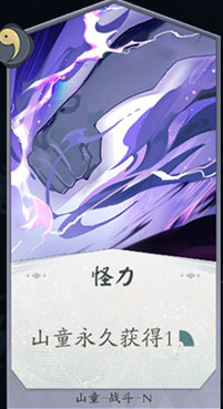 山童进入快攻套牌的资本之一就是这张【怪力】,作为一张N稀有度的战斗牌,使用后将山童的攻击力永久提升,使贯通的价值收益提升,还额外附赠了一次进攻?