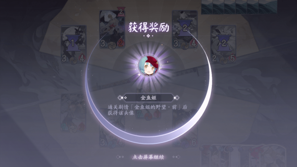 大天狗作为第二章的最终关卡,难度自然不低,但是通关奖励也会十分丰厚。成功通关后,除了经验值与金币的奖励以外,还可以获得凤凰火的SSR卡牌“炎舞”,以及世界第一可爱的金鱼姬头像奖励。