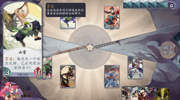 山童每消灭一个敌方式神会使己方所有法术伤害+1,且生命值有10点之高,这使得我们在费尽力气击杀掉山童后,我方式神的伤亡会直接影响到敌方凤凰火的输出。