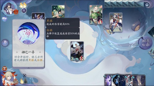 本局游戏中,对手的被动技能为“神之一手”,回合开始时,使所有己方式神获得“黑棋”或“白棋”。