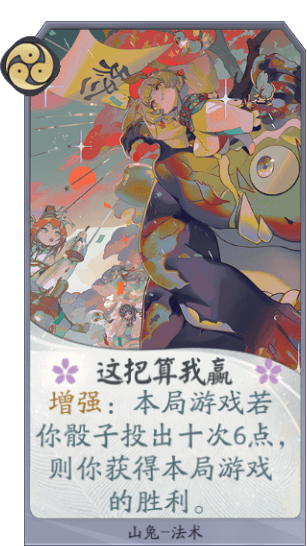 卡牌效果:增强:本局游戏若你骰子投出十次6点,则你获得本局游戏的胜利。