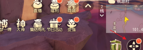 1、点击进入游戏主页,之后点击在右上方的小地图,点击在页面中的梅花标志;