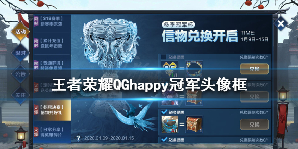 以上就是游戏爱好者小编为大家带来的王者荣耀QGhappy冠军头像框兑换方法分享,更多有趣资讯尽在游戏爱好者~