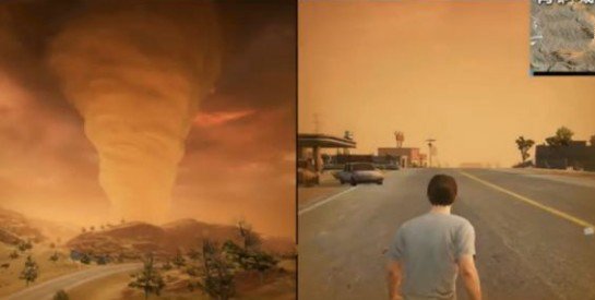 沙尘暴模式当中场景的整体亮度会相对降低,而同时玩家将能够在天空的边缘看到沙尘暴的贴图。