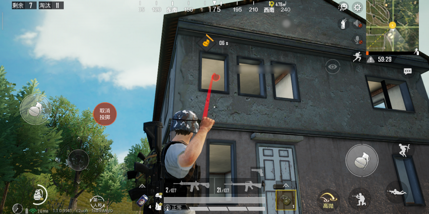 玩家扔雷时对手可以抓住你投掷时的空窗期,而冲楼对手则占据了地形的绝对优势。因而相比于扔雷和冲楼这两种技巧,这第三种技巧——高点打击安全性更高。当然它也有个致命缺陷,就是周围必须要有比对手更高或者同高的建筑物,只有这样才能完美施行这套方案。确认对手位置之后,玩家进入其附近适合攻击的目标建筑物内,卡住对手视线,在占据高点优势之后,无论是直接对枪还是投掷手雷玩家都占据绝对的优势,只要对手敢暴露,玩家就可以放心打。在确保己方安全的情况下,还可以达到无伤攻楼的目的。