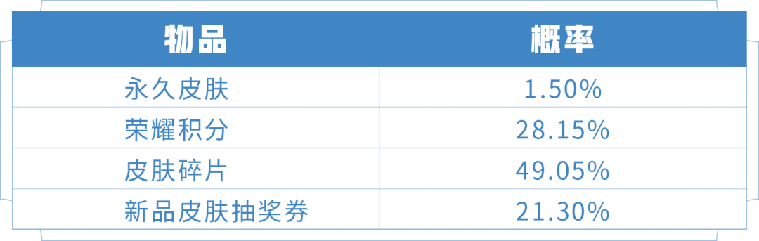 打开后必定获得铭文碎片*30、英雄碎片*1、团战精神(坚韧/敏锐/掌控/沉稳/守护)回城特效之一(3日)*1;还有几率获得下列永久英雄之一(猪八戒、赵云、马可波罗、蔡文姬、杨玉环)。