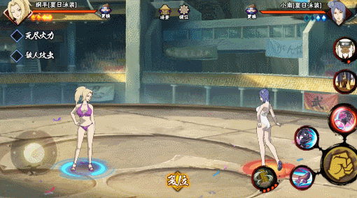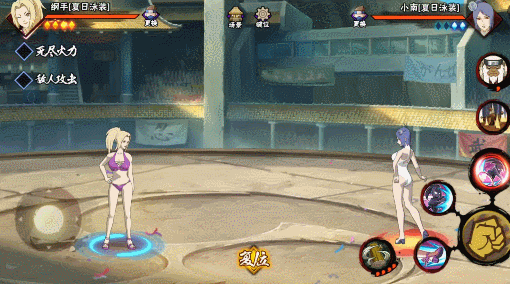 纲手[夏日泳装]奥义技能的效果如技能名称一样,纲手先跳起将沙滩排球重重打在敌人身上,随后再使用金豪拳打在沙滩排球上,将敌人震飞。