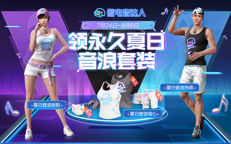 活动期间,完成任务或在游戏内拾取可获得唱片,使用唱片进行搓碟,通过搓碟积累现场躁度,当躁度值达到一定值时可领取套装-夏日音浪(永久)!