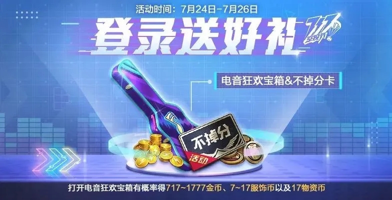 活动期间登录游戏即可领取电音狂欢宝箱和不掉分卡!