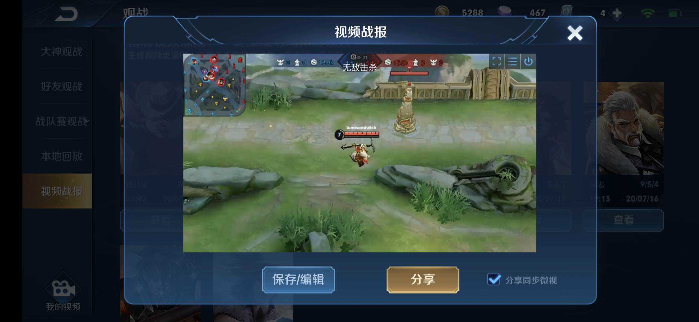 玩家的一场精彩对局可能会包含多条视频战报,可以前往微视查看及保存全部的视频战报。
