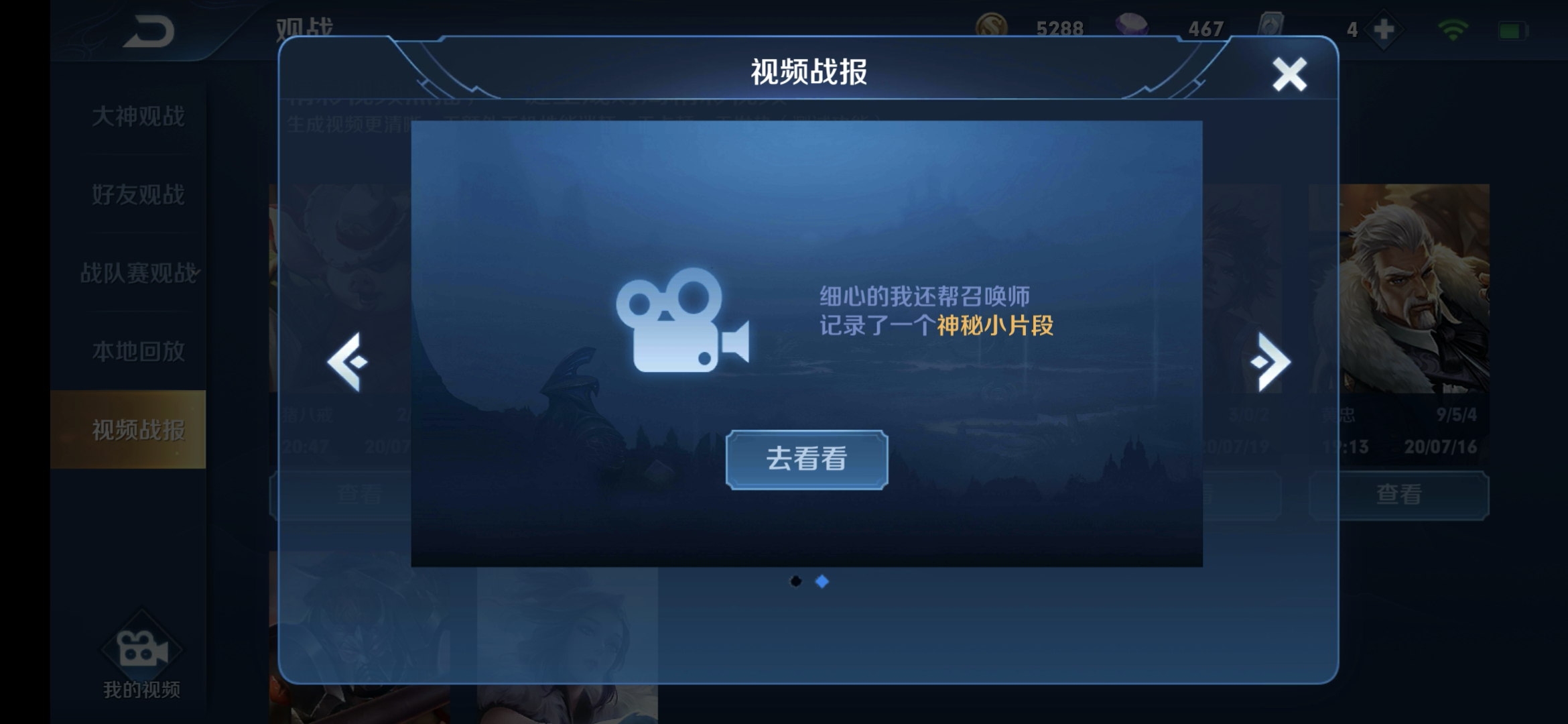 视频战报点播后需稍等片刻,玩家可以在观战界面-视频战报切页查看生成的视频战报。当有新战报生成时,主界面的观战按钮上会有气泡消息通知您,请注意查收战报哦。
