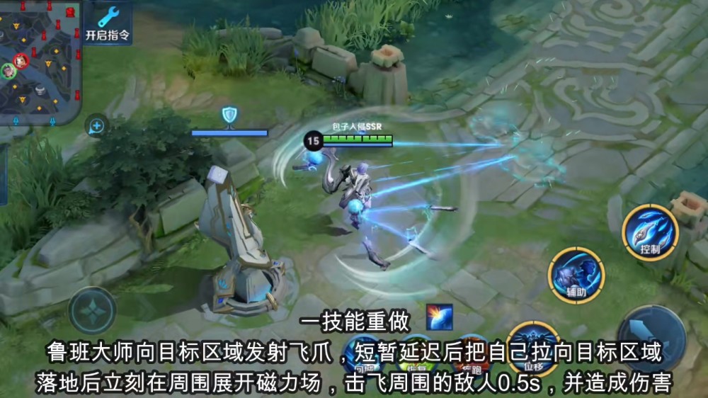 一技能的重做是鲁班大师向目标区域发射飞爪,短暂延迟后把自己拉向目标区域。落地后立即在周围展开磁力场,击飞周围敌人0.5s,并造成伤害。这个技能重做后,就能当做开团先手去使用,不仅能位移还能击飞,算是非常有用的技能了。