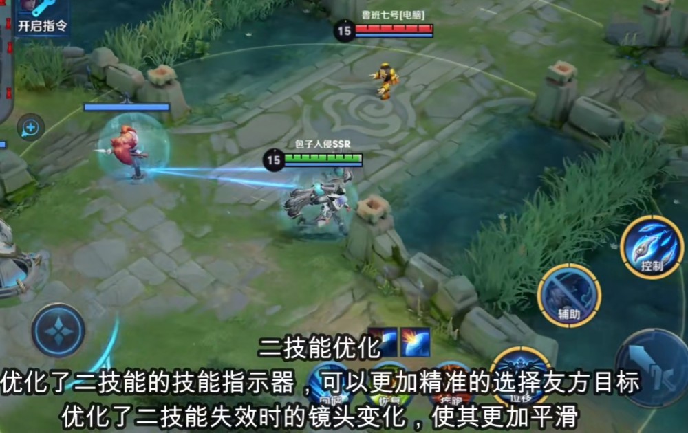 再来看看二技能,二技能没有进行什么调整,只是将其优化了。官方优化了二技能的技能指示器,可以更加精准的选择友方目标进行辅助,还优化了二技能失效时的镜头变化,使其更加平滑,用起来也更加顺手。
