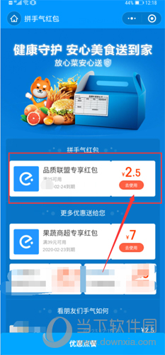 7、在红包卡券页面,可以看到之前分享获得的红包,可以直接进店使用该分享红包。