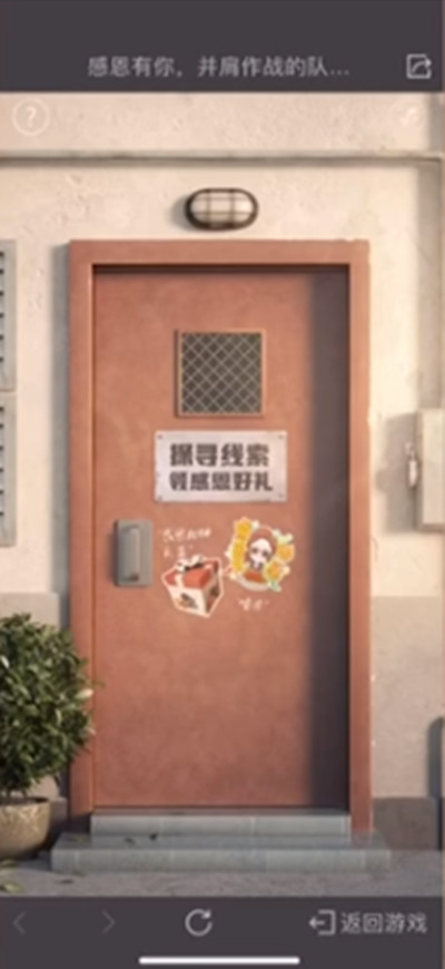 敲门之后会有一段对话,提示在房间内有礼物,进入房间之后滑动场景即可查看更多线索。找齐包括照片墙上的合照在内的四个线索之后就可以领取感恩有你活动的礼物了。