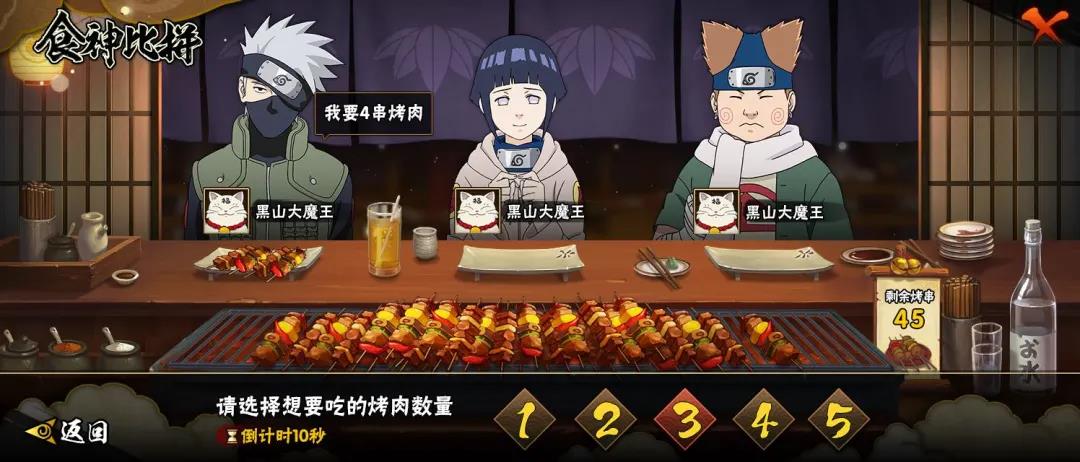 学员们有没有像小编一样能吃呢?在食神比拼中有海量烤肉在等着你呦!进入游戏后,学员们将随机分到三个座位上,根据座位顺序,从左往右依次选择吃不同数量的烤肉。