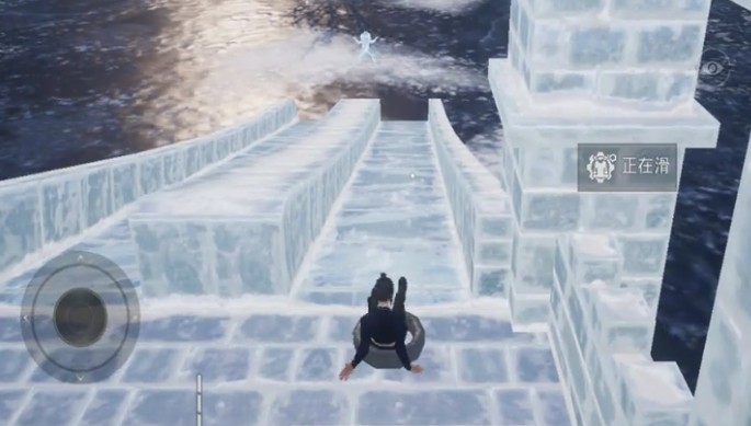 冰湖镇右下角的湖面处,可以看到滑滑梯。