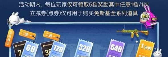目前,《和平精英》与微视已经发起了新的联动内容,玩家们只要在微视达成一定数量的积分,就可以获得一定数量的立减券。最低只需1元即可购买和平精英兔斯基套装哦!