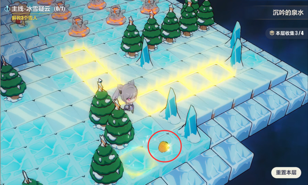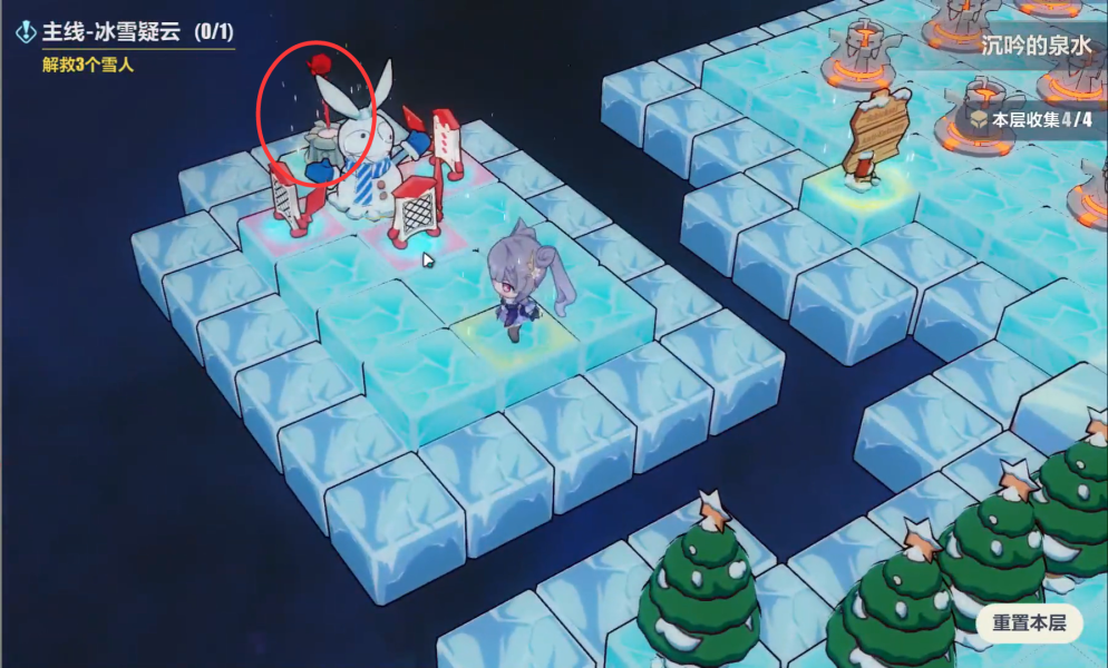 按照图中顺序互动即可全部点亮,完成这个谜题,救出最后一个雪人。第一层全收集完成,我们进入下一层。