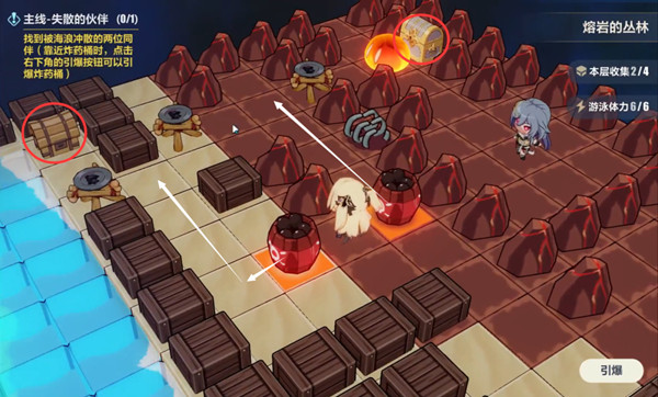 第二个推箱子也没有什么难度,按照箭头推到位置引爆即可。图中宝箱记得拿,本层全收集就完成了,并且识律和冰希都会加入队伍。