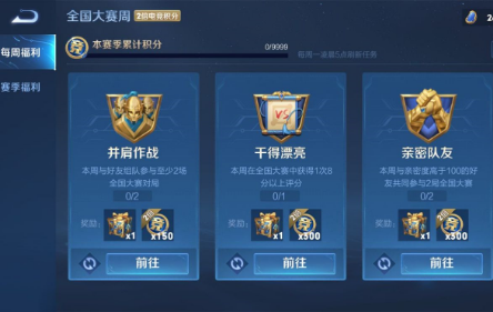 而电竞喝彩礼包需要完成电竞福利每周任务,玩家每周会随机刷新3个任务。