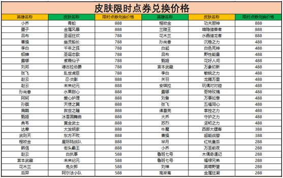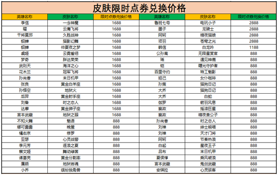 1、限时点券商城可使用限时点券兑换皮肤,英雄,道具奖励;